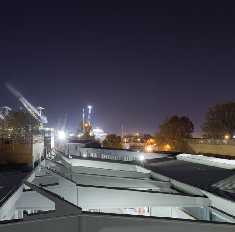 The project, which provided for the overall transformation of a disused industrial building of about 15,000 square metres, built in the 1960s and 1970s in the first industrial area of Porto Marghera, made it possible, with the establishment of the new activities (the new Venice Fruit and Vegetable Market and a bar-restaurant), to give back to the city a part of the territory that industrial production had long since abandoned.