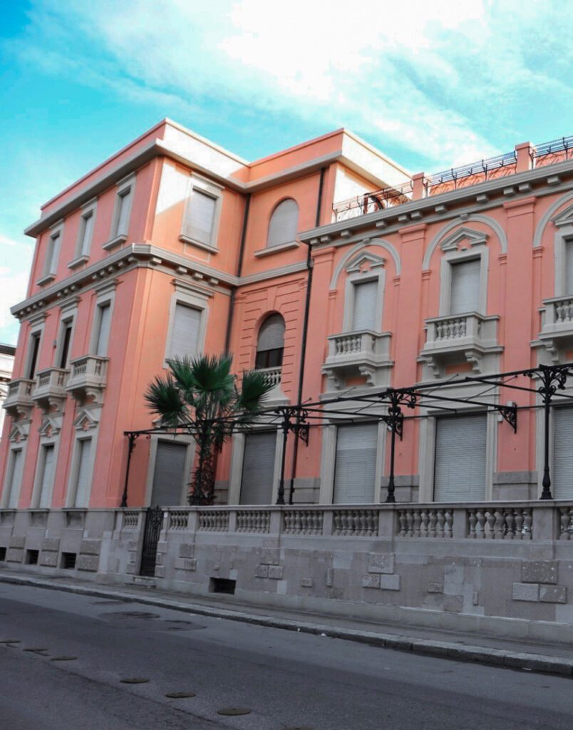 L’edificio, situato lungo Corso Vittorio Emanuele, è affacciato sul lungomare ed è caratterizzato da canoni neoclassici con decorazioni in stile liberty, presenti anche nei locali interni.