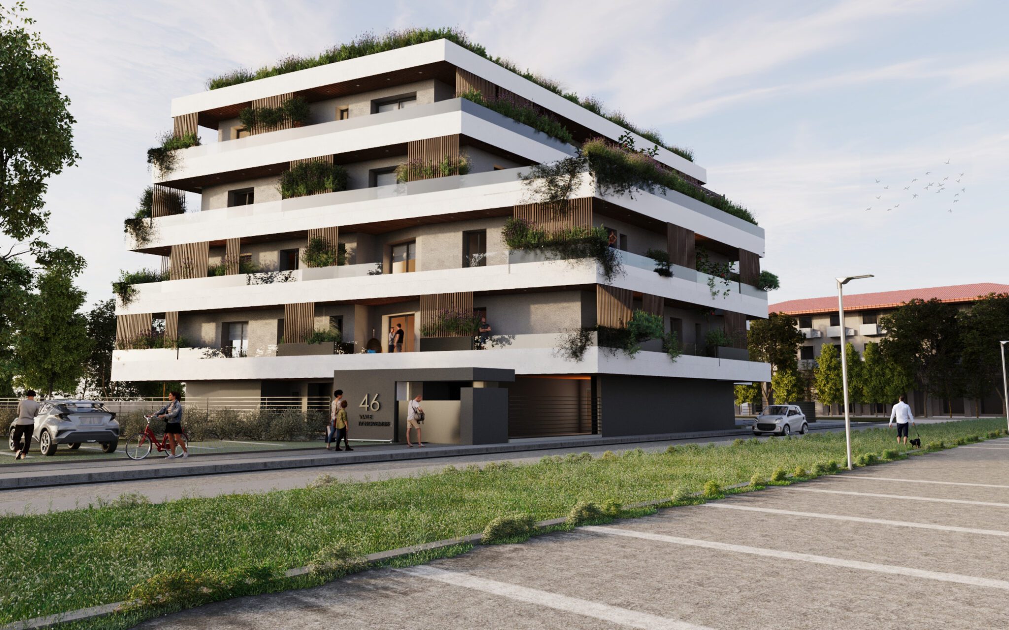 L’edificio comprende 14 appartamenti di varie dimensioni, da 60 a oltre 120 m², pensati per soddisfare diverse esigenze abitative. Ogni unità è dotata di camere matrimoniali e singole, soggiorni ampi e luminosi che si affacciano su terrazze e giardini privati. Al piano terra sono previsti garage di pertinenza, locali tecnici e un ampio deposito biciclette, favorendo stili di vita sostenibili e moderni.