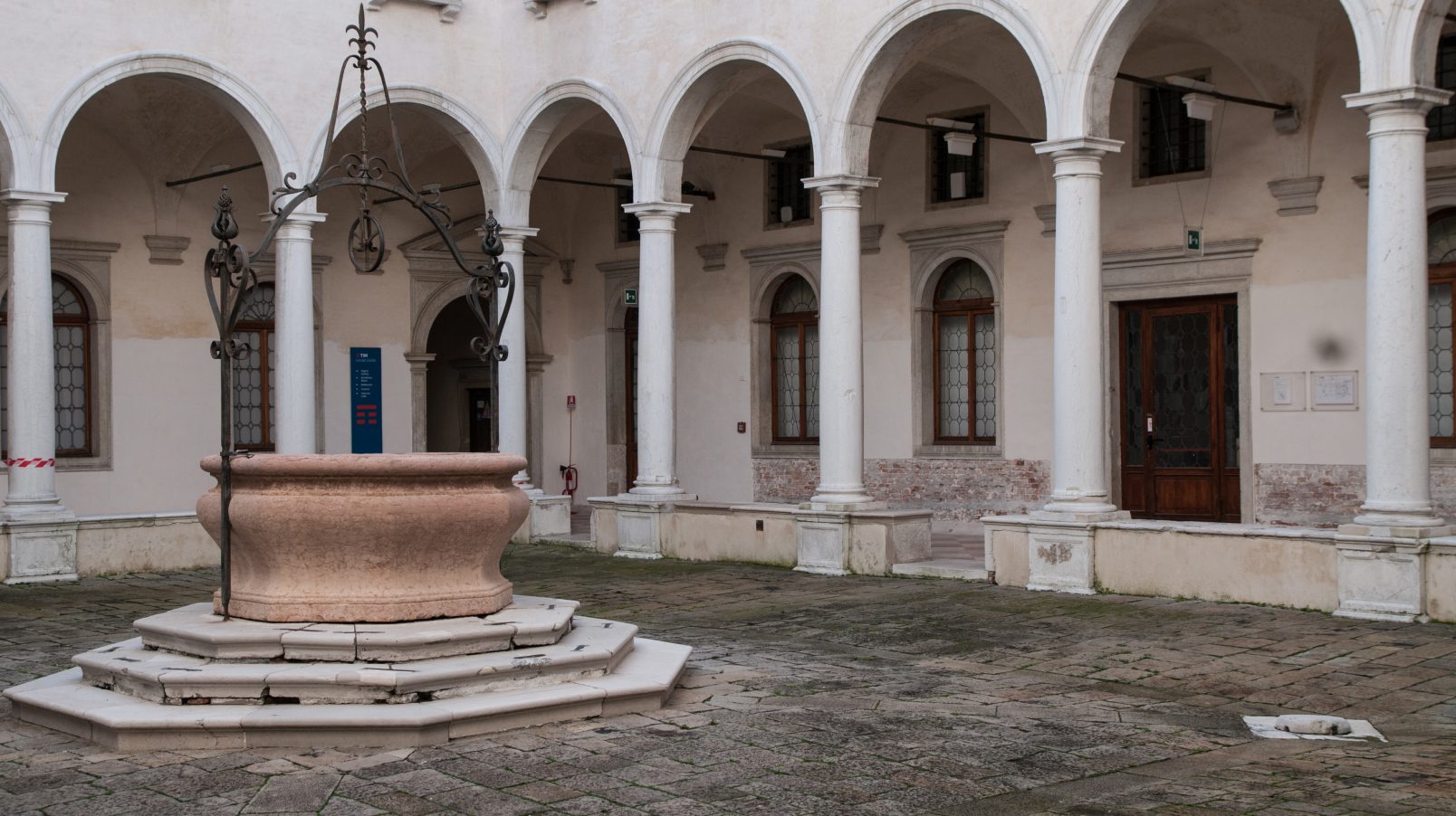 di impianto romanico-gotico di S. Salvador a Venezia. La struttura, interessata da un imponente intervento nel XVI sec. a seguito del quale appare nella sua configurazione attuale, è stata adibita a caserma militare nel XIX sec. e utilizzata, sin dagli inizi del ‘900, dalla società telefonica di stato. L’ultimo intervento sull’immobile è della seconda metà degli anni ’80 del ‘900, per volontà di TIM, che tuttora utilizza l’immobile.